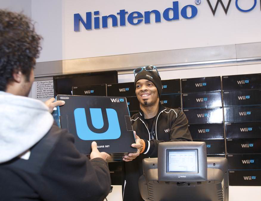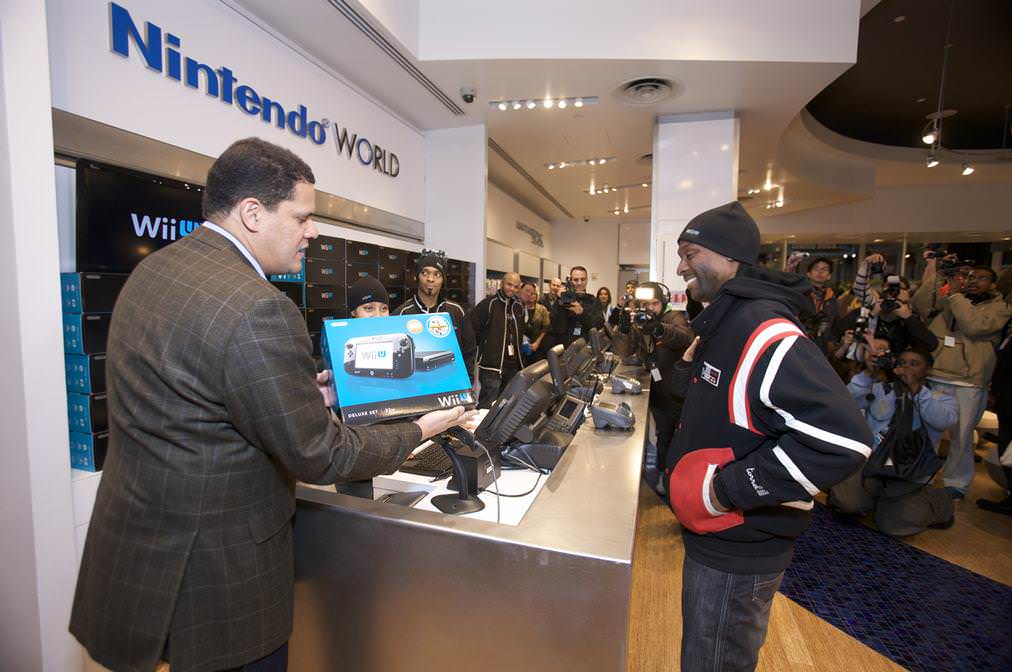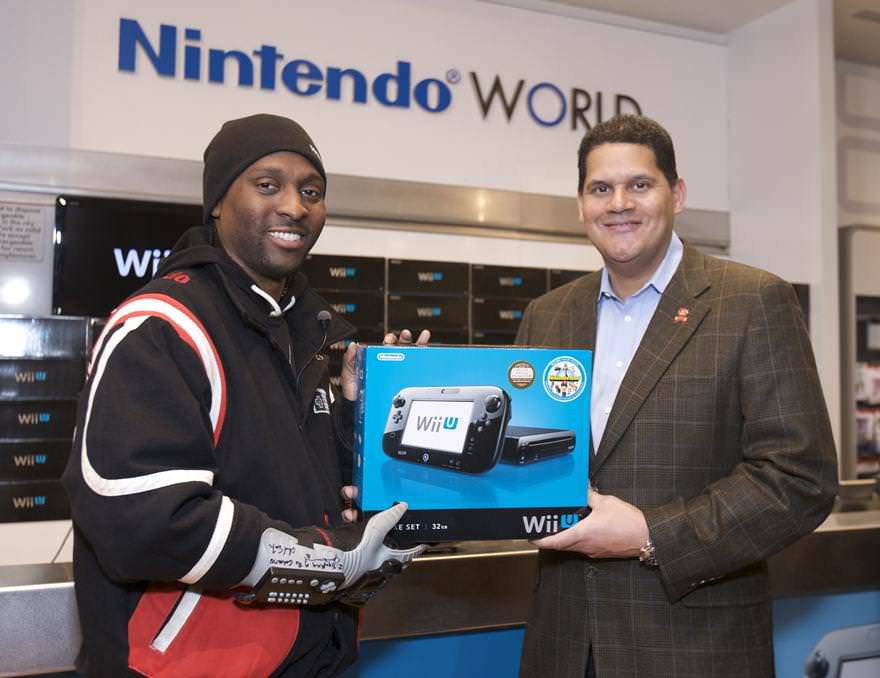 Vor dem Nintendo World-Gebäude in New York, USA, wurde die Schlange der Fans immer länger. Viele standen an, um rechtzeitig zum Launch der Nintendo Wii U die neue Konsole kaufen zu können. Firmenchef Reggie Fils-Aime ließ es sich dabei nicht nehmen und unterhielt nicht nur die Fans in der Warteschlange, sondern verkaufte auch persönlich die erste Wii U in den USA.