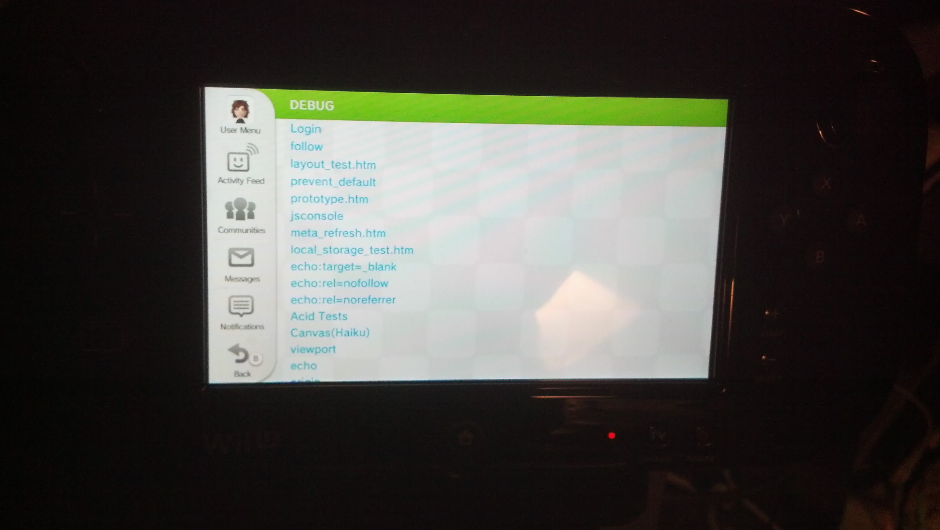 Ein unabsichtlicher Wii U Hack führte einen frisch gebackenen Wii U-Besitzer in ein Debug-Menü der Konsole und brachte offenbar bisher unangekündigte Titel ans Tageslicht.
