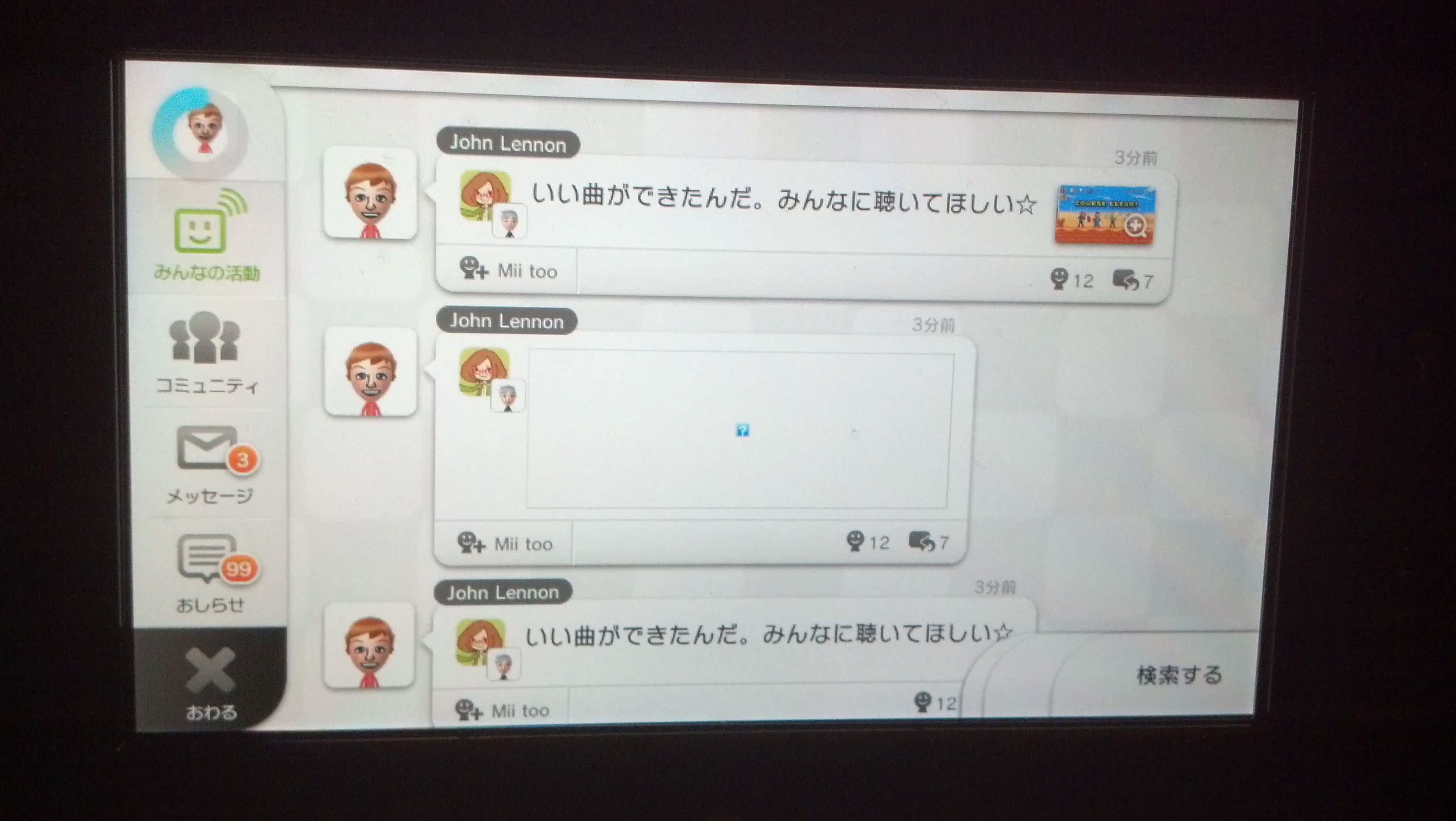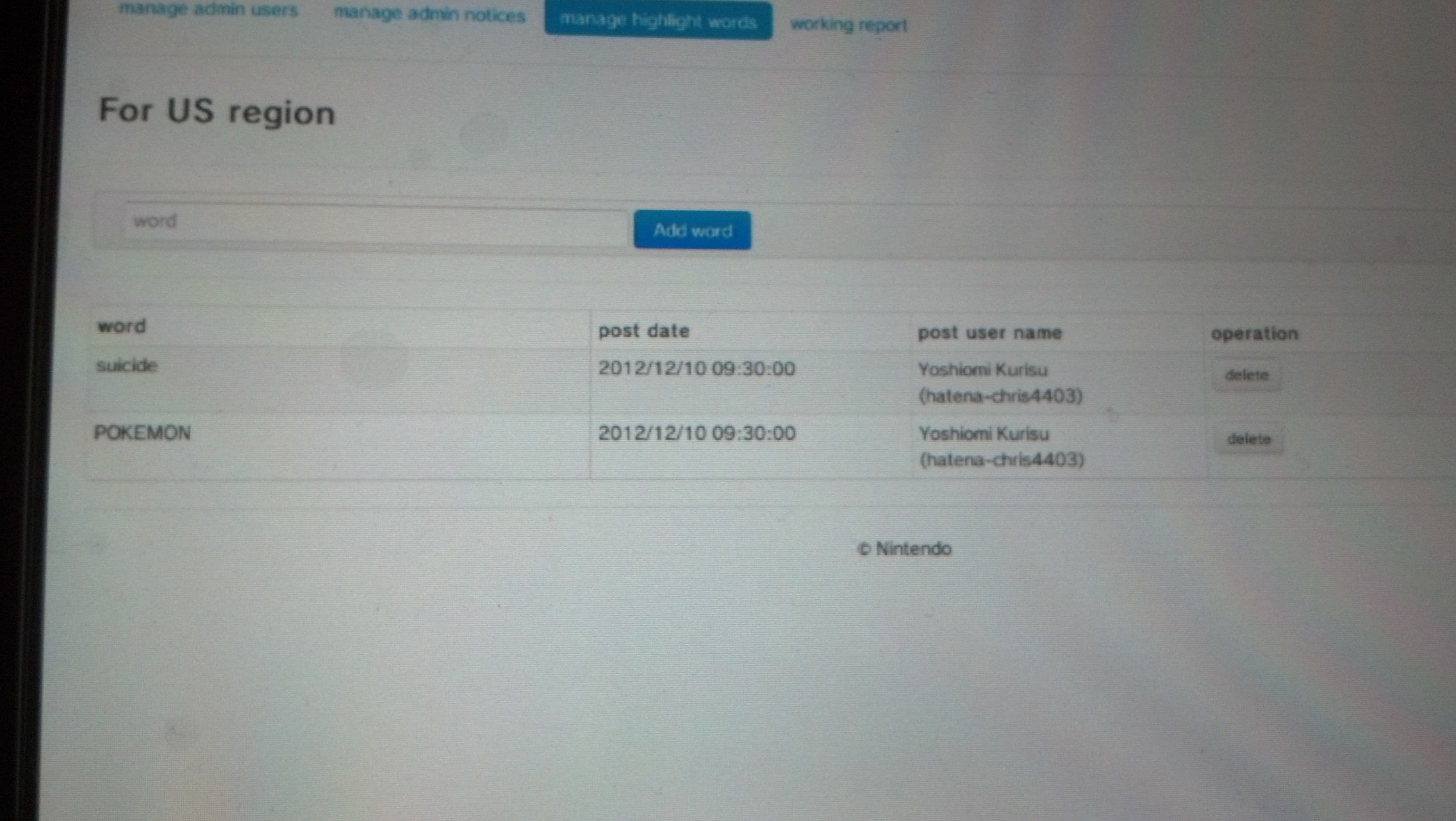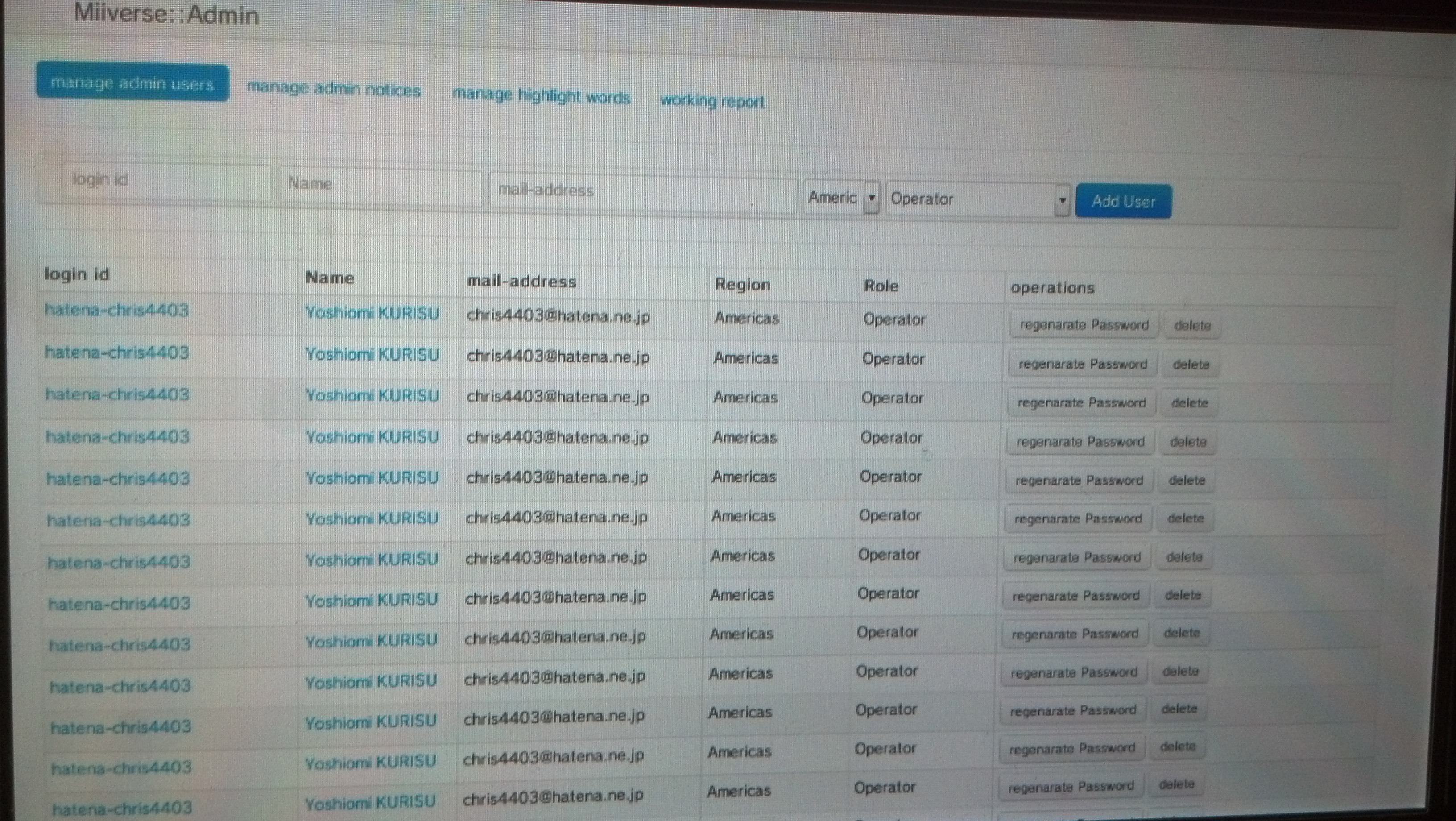 Offenbar hatte er hier ein Menü entdeckt, mit dem die Administratoren des Miiverse arbeiten sollen. Er hätte hier theoretisch Rechte verteilen und Posts löschen können. Aus Angst gleich mit seiner Nintendo Wii U gebannt zu werden, traute er sich nicht eine der Aktionen auszuführen. Interessant ist allerdings die Tatsache, dass sich in diesem Menü auch bisher nicht veröffentlicht Foren des Miiverse versteckten. Diese sind nach Spielen wie Metroid, Yoshi's Island Wii U, Donkey Kong, Soul Hackers, Resident Evil, Metal Gear Solid, Final Fantasy 2 und Dragon Quest 10.