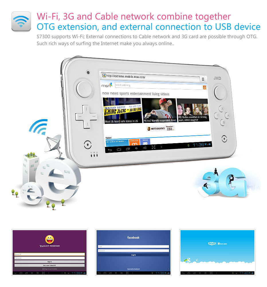 Auch aus China stammt auch ein neues Android-Tablet, welches die offizielle Bezeichnung "Smart Console 7300" trägt. Rein optisch scheint es ein gelungenes Plagiat des Wii U GamePAds zu sein, denn sogar die Tastenbezeichnung des Originals wurde übernommen. Das Tablet bietet Android 4.1 als Betriebssystem und ermöglicht den Spielern den Zugriff auf alle Apps auf dem Google Play Store. Das S7300 verfügt im Gegensatz zum Wii U GamePad sogar über einen kapazitiven Touchscreen, der eine Größe von 7" aufweist.