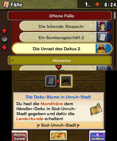 Auch andere Funktionen des 3DS wurden in dem Spiel mit eingebunden. So könnt ihr stets mittels Touchpad das Menü bedienen und müsst das Spiel dafür nicht pausieren. Ihr könnt also auf beiden Bildschirmen gleichzeitig arbeiten, wie auch schon beim 3DS-Remake zu Ocarina of Time zuvor.