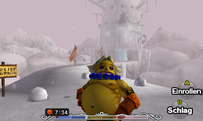 Und dies ist das Hauptelement dieses Spieles. Ihr müsst immer wieder verschiedene neue Charaktere treffen, eure Ausrüstung zusammensuchen (die ihr zum Glück Ablauf der Zeit behalten dürft) und erledigt Missionen mittels eurer Okarina und den 24 im Spiel versteckten Masken, die ihr zwar nicht alle zwingend für den Spielverlauf benötigt, euch aber sehr behilflich sein werden.